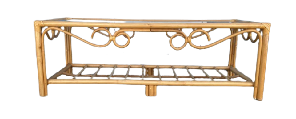 Collection Side Tables & Coffee Tables Kinsley Coffee Table Search View Wishlist Kinsley Coffee Table Price: $50.00 Description: Rattan and glass top coffee table Quantity: 1 Tags: wood, rustic, boho, brown, coffee table Add to Wishlist