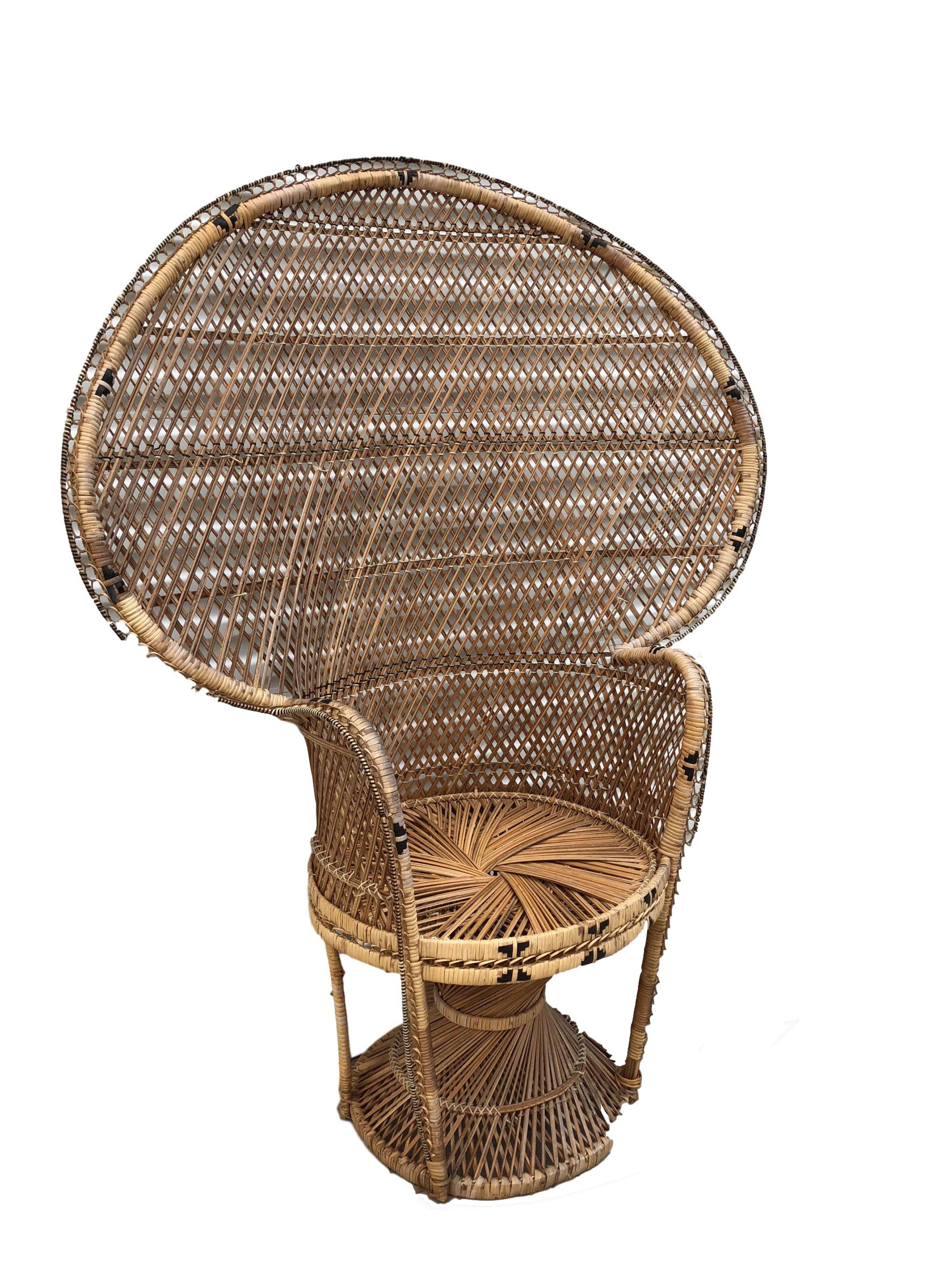 Collection Sofas & Lounge Chairs Loretta Peacock Chair Search View Wishlist Loretta Peacock chair Price: $50.00 Quantity: 1 Dimensions: 35 x 58 x 19 Tags: boho, vintage, chair, brown, tropical, wicker Add to Wishlist