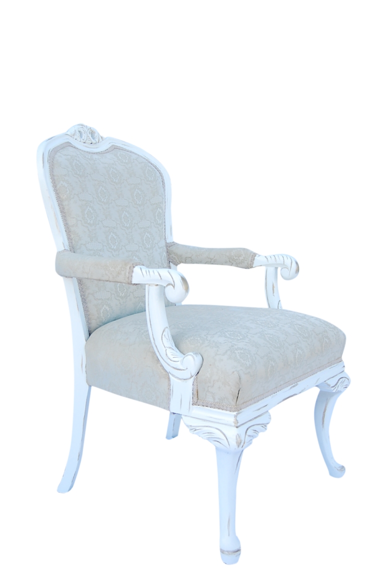 Collection Sofas & Lounge Chairs Maureen Chair Search View Wishlist Maureen Chair Price: $35.00 Description: Maureen's cream fabric with white distressed frame. Perfect accent for any lounge set or extra staging alone with a side table. Quantity: 1 Tags: cream, ivory, parisian, romantic, garden, neutral, chair Add to Wishlist