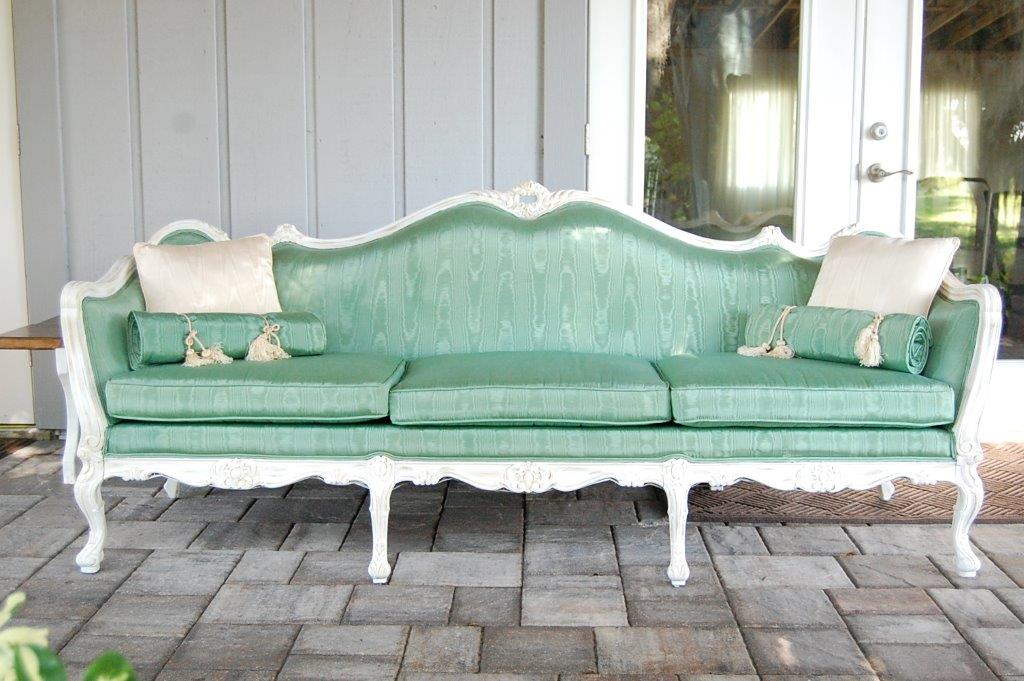 Collection Savannah Sofa Search View Wishlist Savannah Sofa Price: $175.00 Description: Savannah is southern grace to a T, in mint green and white elegant trim she can be fancy or quaint, but always charming. Quantity: 1 Dimensions: 90 x 41 x 31 1/2 Tags: romantic, chic, vintage, green, farmhouse, ecclectic, sofa Add to Wishlist