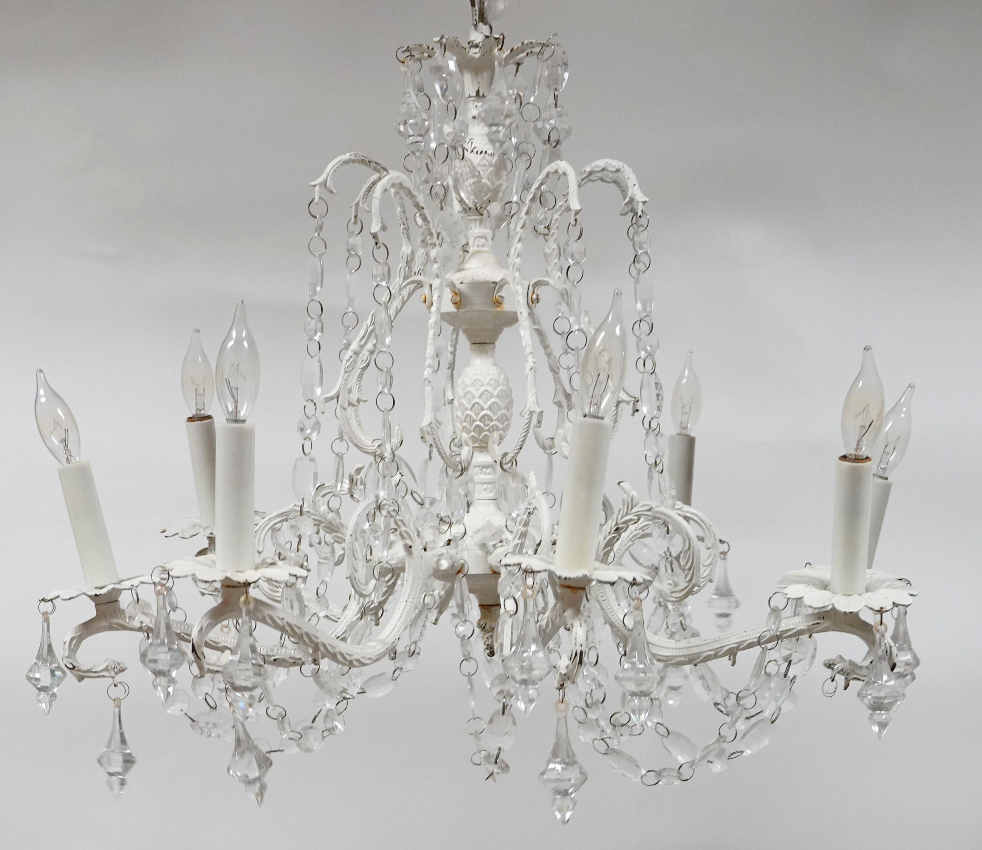 Collection Lighting White Chandelier Search View Wishlist White Chandelier Price: $100.00 Description: White Chandelier with crystals and 6 lights. Quantity: 1 Tags: romantic, ceremony, sweetheart table, cake, rustic, gatsby, hanging, victorian, chandelier, bronze, crystal, lighting, elegant Add to Wishlist