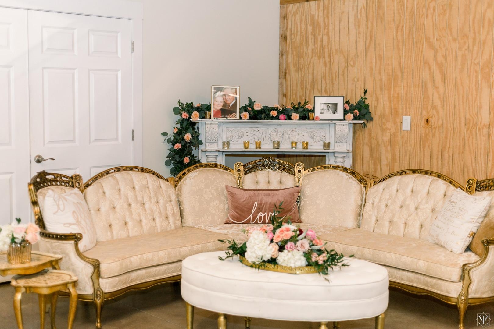 Tags: white, romantic, ceremony, photo booth, sweetheart table, cake, wood, rustic, lounge set, backdrop, cocktail hour, distressed, mantel